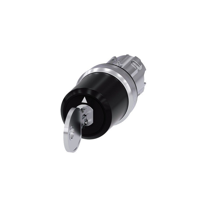 key-operated switch CES, 22 mm, round, metal, shiny, lock number SSG10, with 2 keys, 3 switch positions I-O-II, latching, actuating angle 2×45, 10:30h 12h 13:30h, Key removal I+II–3SU1050-5BL41-0AA0