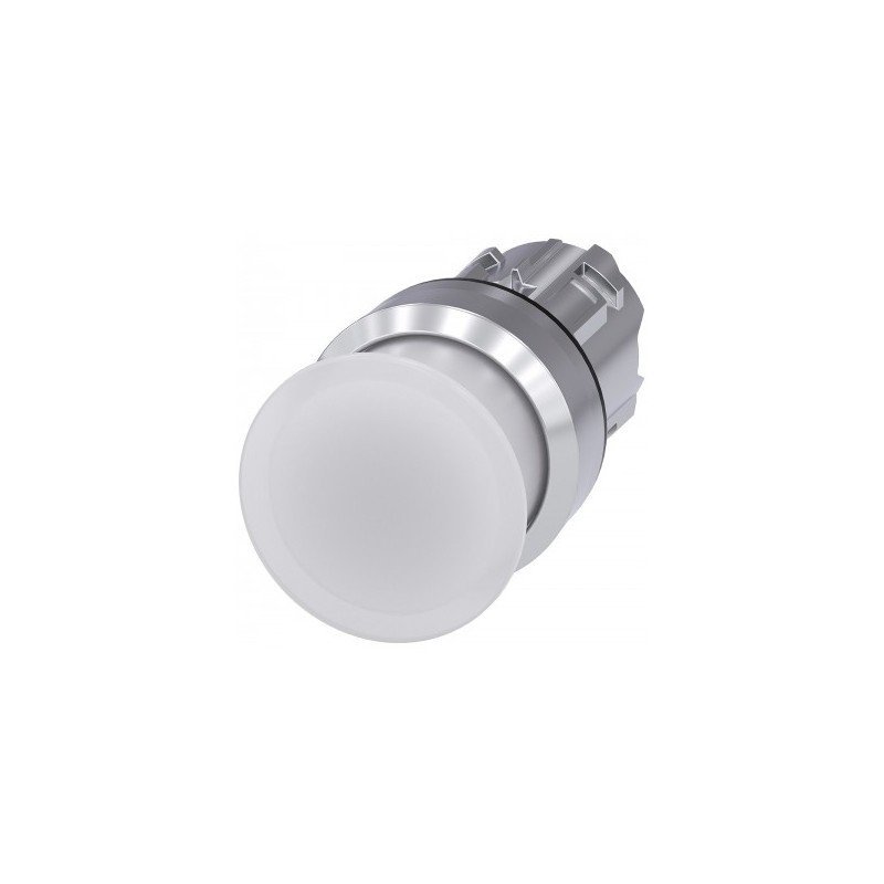 Illuminated mushroom pushbutton, 22 mm, round, metal, shiny, white, 30 mm, momentary contact type–3SU1051-1AD60-0AA0