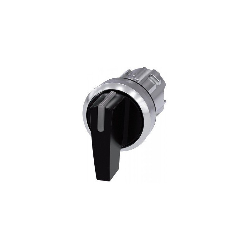 Illuminable selector switch, 22 mm, round, metal shiny, black, Selector switch long, 3 switch positions I>O–3SU1052-2CM10-0AA0